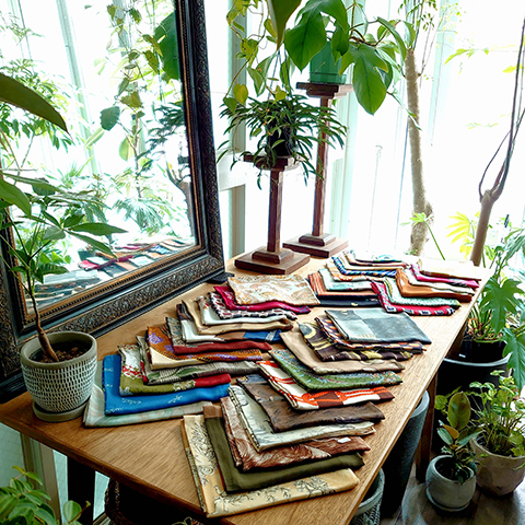 1960年代~1970年代を中心に集めた柔らかく温かなシルク素材にこだわり、日々のファッションに取り入れやすい色合いや絵柄をご紹介しております。