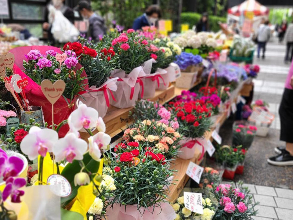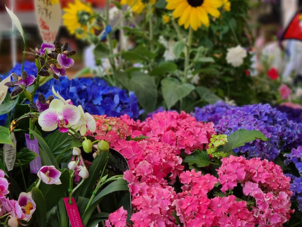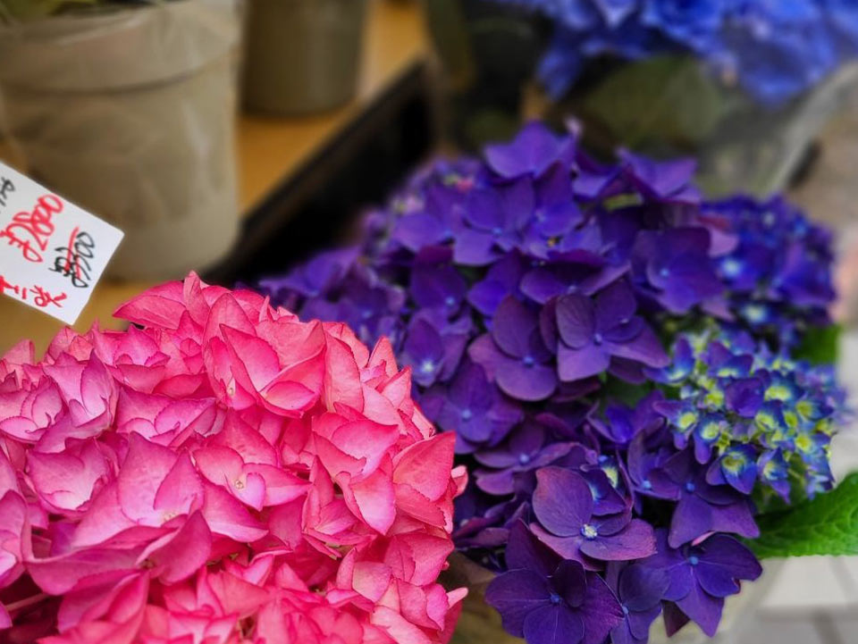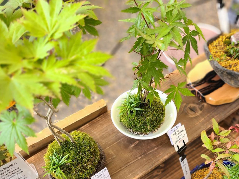 2ヶ月ぶりに不安のない晴天の下でのマルシェでしたが、季節はまもなく梅雨入りらしく、花卉のお店では紫陽花、また盆栽のお店では涼やかな苔玉などが目を引きました。