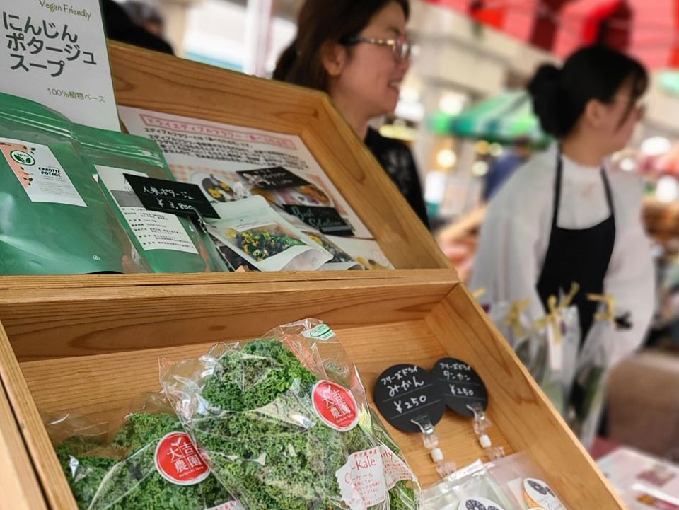 出始めでまだ味が乗っていない野菜についても率直に丁寧にお話しされていて、お客さまも納得して購入されていました。
